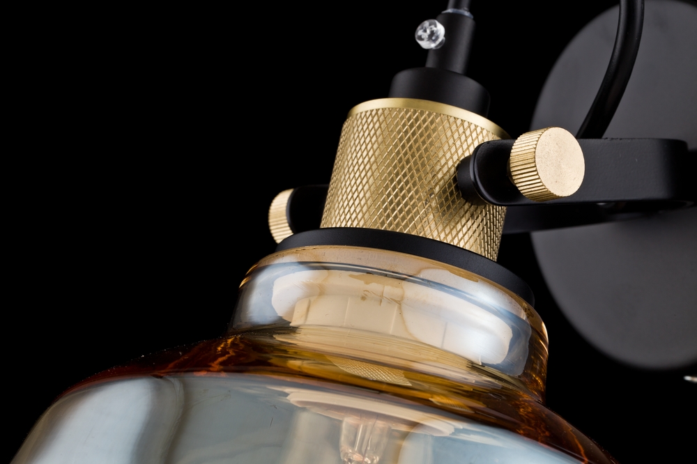 Каркас из металла. Плафоны из стекла: прозрачного, дымчатого и янтарного.